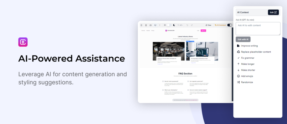 - AI-Powered Assistance: Leverage AI for content generation and styling suggestions.